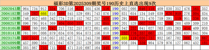 直选号码190历史上开出了9次,其下期分别开出奖号:082、831、291、201、342、232、888、936。